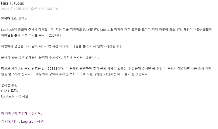 실수로 채팅창을 닫아버리고 큰일 났구나 생각하였지만, 이메일을 통해 도움을 받을 수 있게 되어 너무 고마웠습니다.